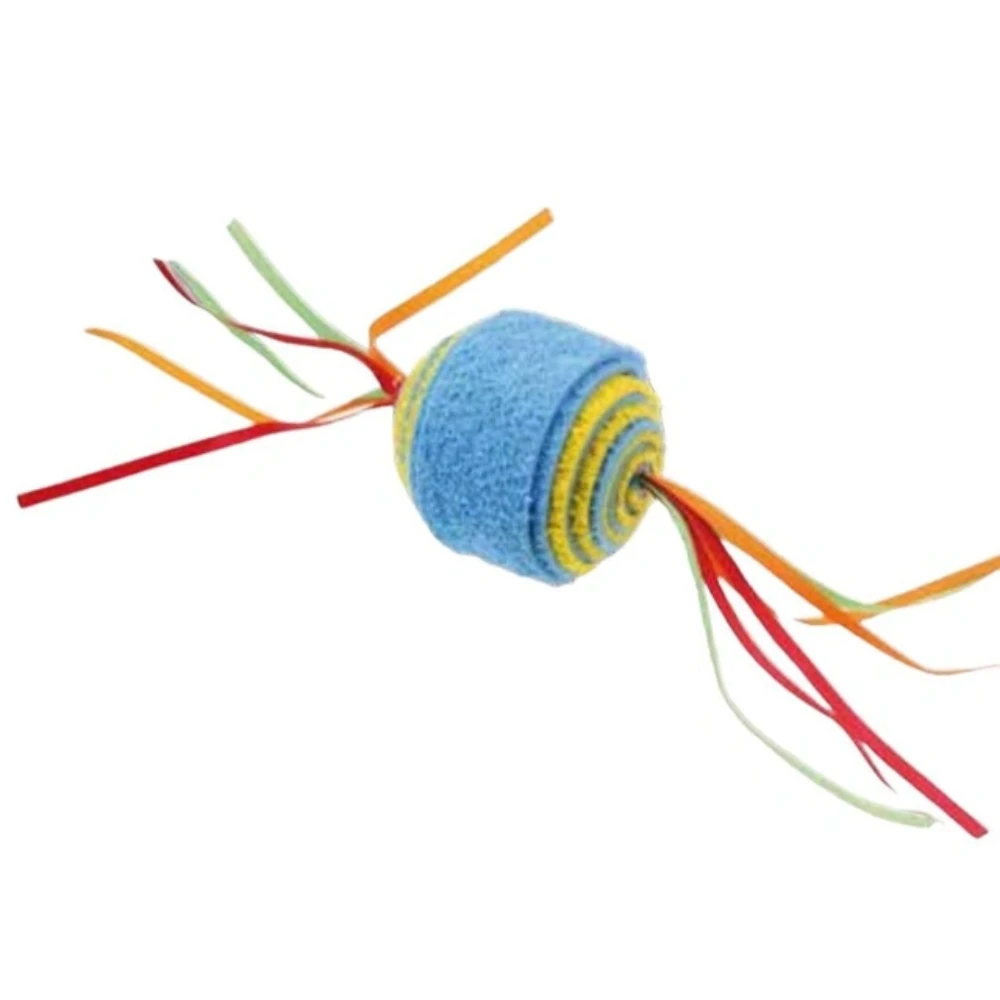 La balle pour chat avec bandelettes est conçue pour stimuler l’instinct de chasse et le jeu actif de votre chat. Ses lanières multicolores attirent l’attention et incitent à la poursuite, aux sauts et à l’attrapage.