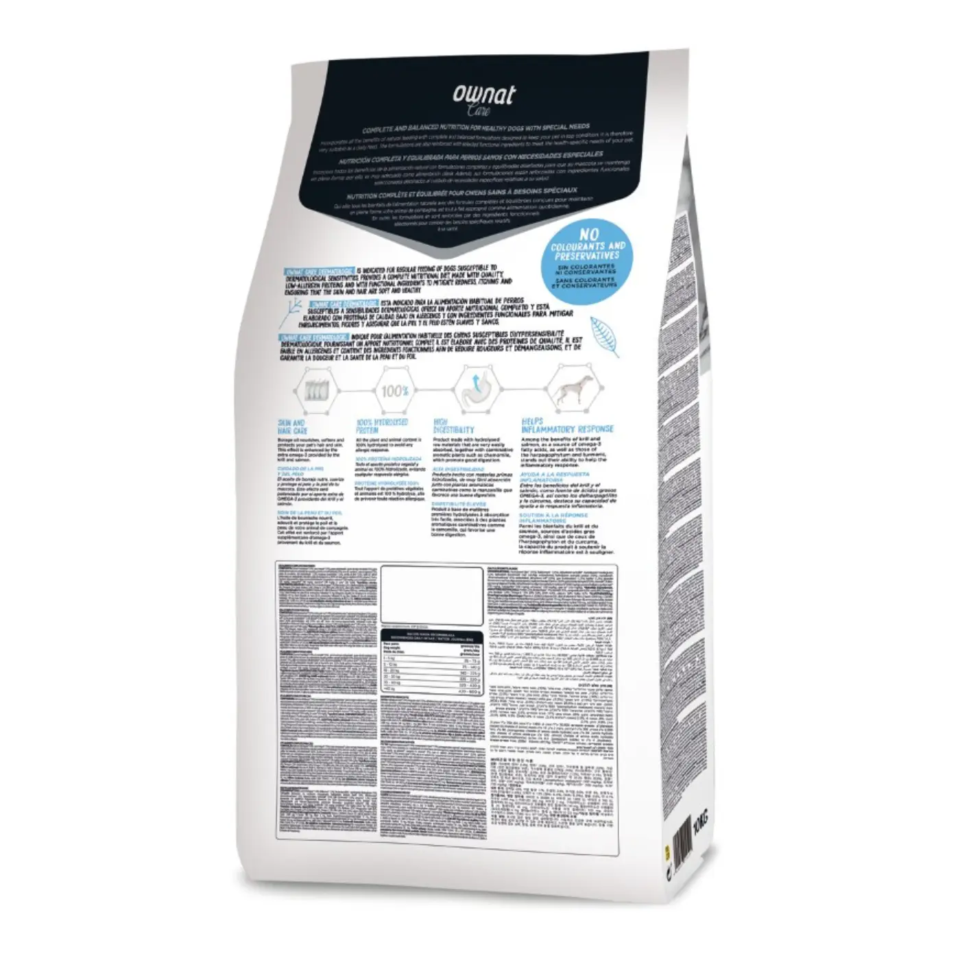 Les croquettes chien dermatologic Ownat Care 10 kg sont spécialement formulées pour les chiens souffrant de peau sensible, démangeaisons ou perte de poils.