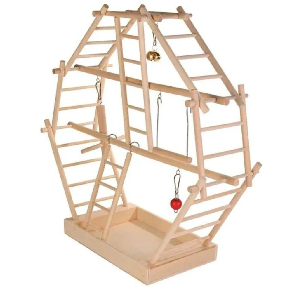 Équipée de plusieurs échelles, d’un perchoir suspendu et d’éléments variés, cette plate-forme permet à votre oiseau de grimper, se balancer et explorer. L’amusement est garanti tout en favorisant le développement de l’équilibre et de la coordination.